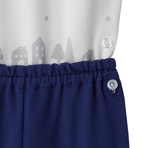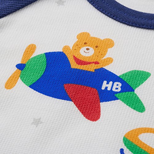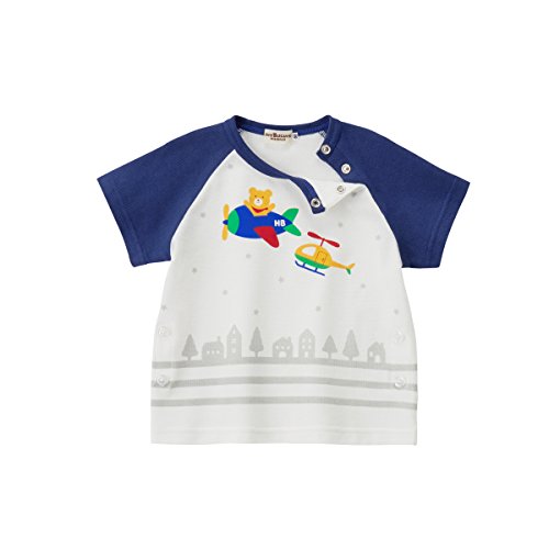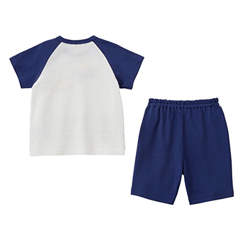 飛行機に乗って星空を楽しむビーンズくん。 夢のあるモチーフの夏向き素材の半袖パジャマです。 パンツは6分丈になっているので涼しく過ごせますよ。 サイドには上衣とパンツを留められる調節用のボタン付き。 これで寝ていてもお腹がでちゃう心配ナシですね。 お生地はさらっとした細かな織り柄のワッフル素材で着心地もいいですよ。 洗い替えにご用意いただくのもオススメです。 ビーンズくんと一緒に夜空を駆け抜ける 楽しい夢がみられそうですね。 ●パンツ:6分丈 ●80cm・90cm 肩あき ●上衣とパンツを留めるボタン付き