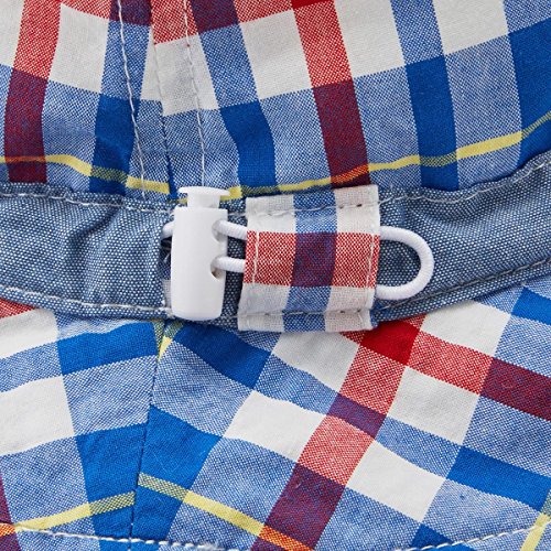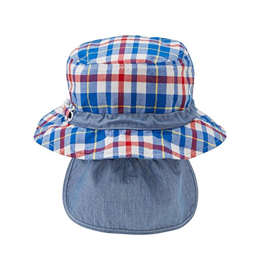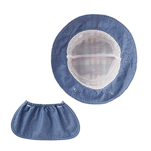 日よけカバーが付いた夏向き素材のハットです。 つい無防備になりがちな首のうしろに、日よけカバーを付けました。 日よけカバーはボタンで取り外し可能なので シーンに応じて使い分けも出来ますよ。 頭囲はゴムの調節機能付きで便利にお使いいただけます。 紫外線遮蔽率(UVカット)90%以上で紫外線対策も万全。 夏のおでかけには忘れずにどうぞ。 ご出産祝としてウエアと一緒に贈ると、見映えも良く喜ばれそうですね。