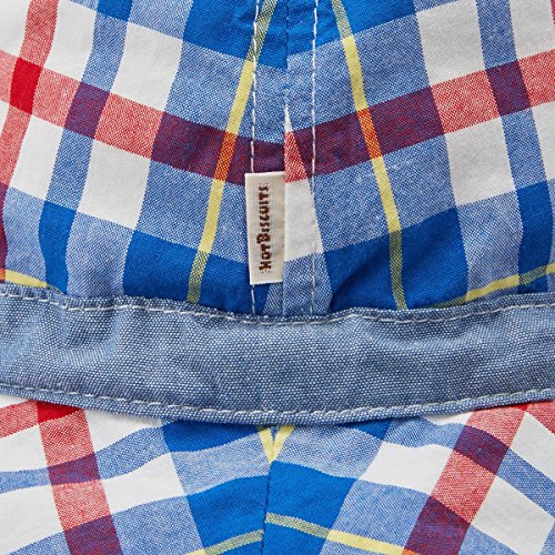 - (ブルー)(本体・つば・日よけ)ダンガリー (つば裏・ベルト)先染サッカーギンガム (青)(本体・つば)先染格子 (つば裏・ベルト・日よけ)ダンガリー