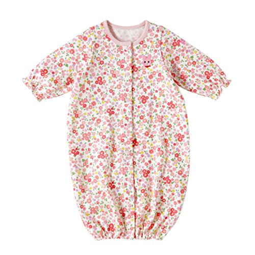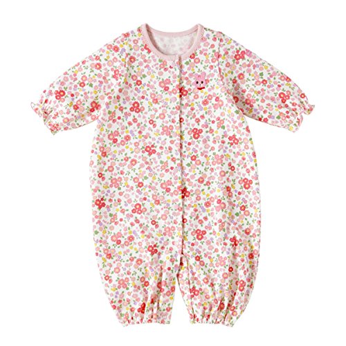 ボーダー柄はビーンズくん 小花柄はキャビットちゃんがポイントになったツーウェイオールです! ツーウェイオールは股下ホックの付け替えで 発育に合わせて2通りに使えて重宝する優秀アイテム! 新生児期はおむつ替えに便利なドレスタイプに、 足の動きが活発になってきたら、カバーオールタイプとして着用いただけます。 前開きホックボタンで全開しますので、お着替えも簡単! 股下ホックボタンで、オムツ替えもラクチンです! 天竺素材はやや薄手で、あたたかい春先や秋口には1枚で着られて便利!! 肌着や羽織物で体温調節しながら、長い期間着ていただけますよ。 ご出産準備の基本アイテムとして、準備しておくといいですね! ご出産御祝にしても喜ばれますよ!