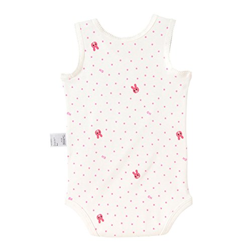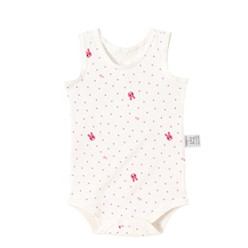 総柄プリントが可愛らしいノースリーブのボディシャツです♪ ドット柄にキャビットちゃんのお顔プリントがとってもキュート!! フライス素材は年中通して着用でき、フィット感が良く伸縮性や通気性に優れています。 柔らかな風合いで、肌着の定番素材なので安心♪ えり元は肩あきのかぶりタイプなので、お着替えもしやすい♪ 股下は3つのホックボタンでとめられるので、おむつ替えもラクチンです☆ 可愛らしいインナーとして、お腹まで覆えるので活発に動いても安心☆ 用途に応じて使い回しが効くボディシャツは、便利でオススメですよ!!