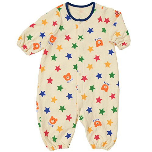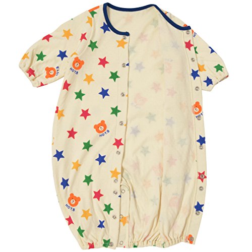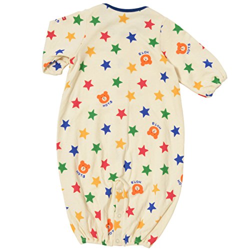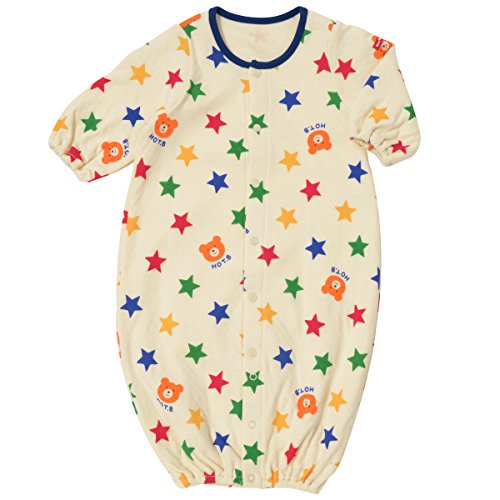 接結天竺素材を使用したツーウェイオールの登場です! ビーンズくんと星柄、キャビットちゃんとイチゴの総柄がとってもキュート! 肌触りのよい生地は、秋から冬にかけてピッタリの接結天竺素材。 とっても柔らかな天竺生地を2枚あわせているので、間に空気の層ができ、保温性が高いのが特徴です。 軽くて通気性がよいので、体温調節が苦手なベビー時期にも最適!! ツーウェイオールは股下ホックの付け替えで、発育に合わせて2通りに使えて重宝する優秀アイテム! 新生児期はおむつ替えに便利なドレスタイプに、足の動きが活発になってきたら、カバーオールタイプとして着用いただけます。 ご出産準備の基本アイテムとして、準備しておくといいですね! 秋から春先まであたたかく着用出来て、便利なベビーアイテムです! ビーンズくんとキャビットちゃんのお顔プリントが和みますね! ホットビらしいポップな可愛らしさは、ご出産の御祝にもピッタリです! ●素材:接結天竺プリント ●品質:綿100%(リブ部分)綿72%、ポリエステル28% ●生産国:タイ