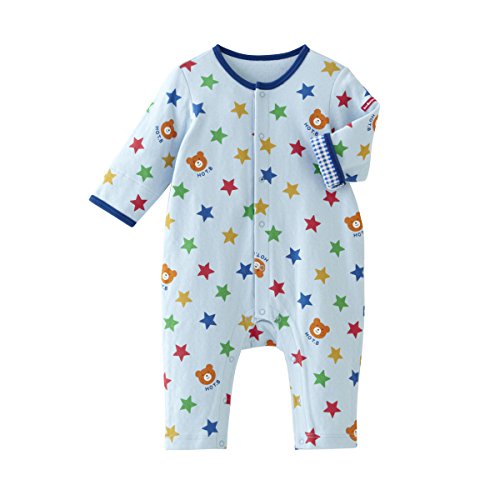 汽車に乗ったビーンズくんと小花がいっぱいのキャビットちゃん! 接結天竺素材を使用したカバーオールです! 肌触りのよい生地は、秋から冬にかけてピッタリの接結天竺素材。 とっても柔らかな天竺生地を2枚あわせているので、間に空気の層ができ、保温性が高いのが特徴です。 軽くて通気性がよいので、体温調節が苦手なベビー時期にも最適!! 袖口は折り返しても可愛く着られるように、チェック柄になっています。 前開きホックボタンで全開しますので、お着替えも簡単! 股下ホックボタンで、オムツ替えもラクチンです! ご出産準備の基本アイテムとして、準備しておくといいですね! 秋から春先まであたたかく着用出来て、便利なベビーアイテムです!可愛い総柄もベビーちゃんらしい! ご出産の御祝にもピッタリです! ●素材:接結天竺プリント(袖口みかえし)40/2天竺プリント ●品質:綿100%(リブ部分)綿72%、ポリエステル28% ●生産国:タイ