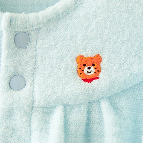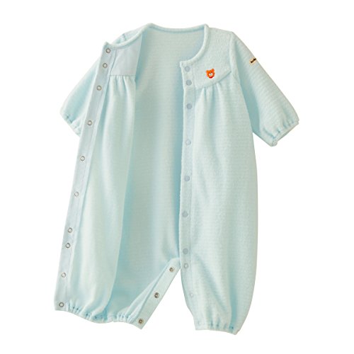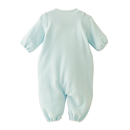 やわらかな無撚糸素材を使用したパイル地のツーウェイオールです☆ ふんわりとした優しい織り方でボーダー模様に仕上げています。 撚りをかけずに紡いだ糸(無撚糸)を使っているのでフワフワのやわらかさ! お洗濯を繰り返しても優れた吸水性とソフトな風合いが続きます。 繊維の長い綿を使用しているので、毛羽抜けが少ないのも特徴です。 ツーウェイオールは股下ホックの付け替えで、 発育に合わせて2通りに使えて重宝する優秀アイテム☆ 新生児期はおむつ替えに便利なドレスタイプに、 足の動きが活発になってきたら、カバーオールタイプとして着用いただけます。 前開きホックボタンで全開しますので、お着替えも簡単☆ 股下ホックボタンで、オムツ替えもラクチンです♪ 淡い色使いはベビーちゃんにピッタリ!! ご出産準備の基本アイテムとして、準備しておくといいですね☆ ◎無撚糸とは… 無撚糸とは、繊維に撚り(より)をかけずに特殊な方法で作られた糸のこと。 無撚糸を使った生地は、撚った糸を使った通常の生地に比べて、驚くほどふんわり、やわらか。 吸収性に優れ、お洗濯しても硬くなりにくく、やわらかさが持続します。 また、厳選した、綿を使用しているので毛羽落ちも少なく、自然な光沢感があります。 生まれたての赤ちゃんの肌にも一番ストレスのない自然の素材です。