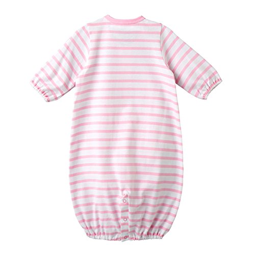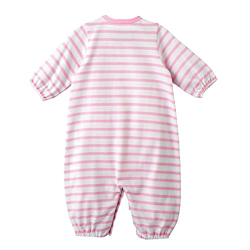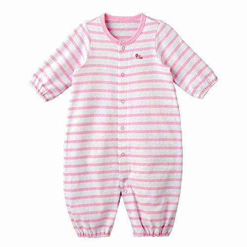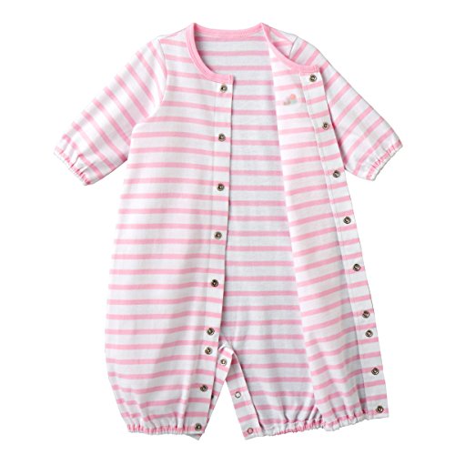天竺素材のボーダー柄ツーウェイオールです。 胸元には車と小花のポイント刺繍入り。 ツーウェイオールは股下ホックの付け替えで、 発育に合わせて2通りに使えて重宝する優秀アイテム 新生児期はおむつ替えに便利なドレスタイプに、 足の動きが活発になってきたら、カバーオールタイプとして着用いただけます。 前開きホックボタンで全開しますので、お着替えも簡単 股下ホックボタンで、オムツ替えもラクチンです 天竺素材は春から秋にかけてお使いいただける素材。 お洗濯を繰り返しても、変わらない肌触りで快適に着ていただけます しかも淡いボーダー柄で清潔感のある白地は、ベビーちゃんにピッタリ ご出産準備の基本アイテムとして、準備しておくといいですね