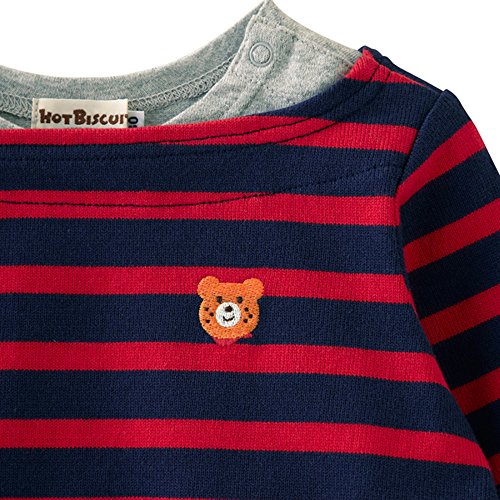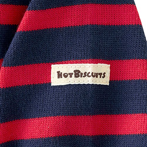シンプルなボーダー長袖Tシャツです☆ ややしっかりめのTシャツ素材で1枚でも着やすいですよ♪ 胸元にはビーンズくんのポイント刺しゅう入り。 左腕の「HOT BISCUTS」のブランドタグもアクセントになっています。 ボートネックで重ね着風なのもオシャレですね☆ ちょっと小技の効いたアイテムでまわりと差をつけちゃいましょう♪ ●全サイズ両肩あき