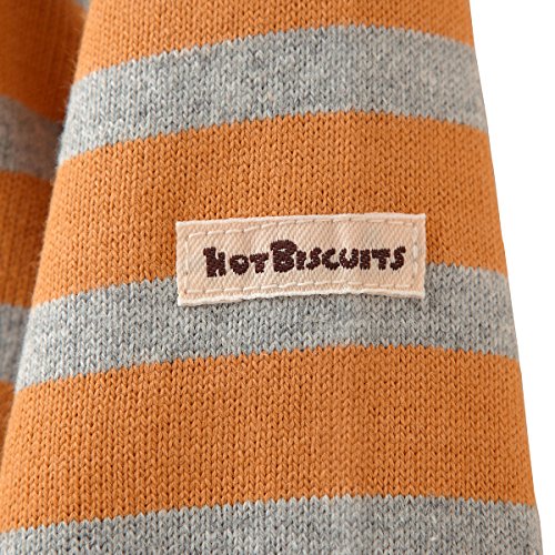 シンプルなボーダー長袖Tシャツです☆ ややしっかりめのTシャツ素材で1枚でも着やすいですよ♪ 胸元にはビーンズくんのポイント刺しゅう入り。 左腕の「HOT BISCUTS」のブランドタグもアクセントになっています。 ボートネックで重ね着風なのもオシャレですね☆ ちょっと小技の効いたアイテムでまわりと差をつけちゃいましょう♪ ●全サイズ両肩あき
