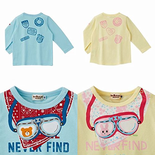 パイロットスタイルがプリントされた とってもインパクトある長袖Tシャツです ゴーグルの中にはビーンズくんとキャビットちゃん 流行のフェイクプリントは遊び心をくすぐられますね 存在感のあるTシャツは、1枚で着られてインパクト大!! 単調になりがちなコーディネートのアクセントにもなりますね バックスタイルのスタンプを押したようなプリントもカッコイイ!! 70cmからご用意があるので、ベビーちゃんのセパレートスタイルにもどうぞ 70cm・80cm・90cm 肩あき