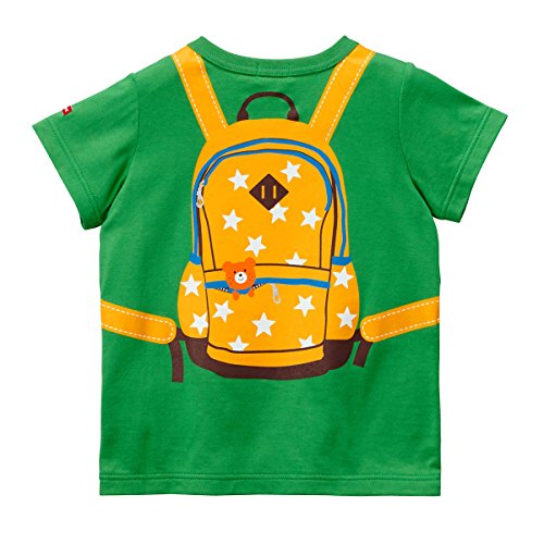 リュックがプリントされた半袖Tシャツです バックスタイルにはビーンズくんとキャビットちゃんが ちょこんとポケットに入って可愛いアクセントに 大胆な流行のフェイクプリントは1枚で存在感バッチリ!! まわりからもきっと注目の的ですよ ユニークで遊び心をくすぐるモチーフでお子様もニッコリ お気に入りの1枚になりそうですね