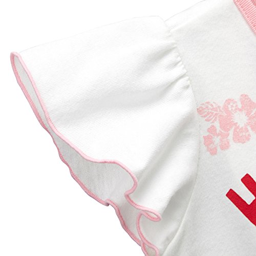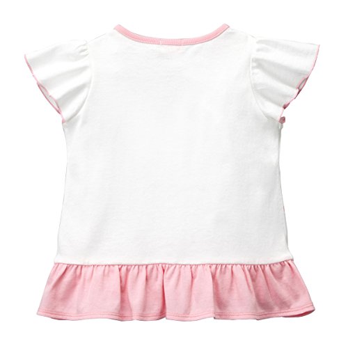 ハイビスカスがプリントされた キャビットちゃんの可愛い半袖Tシャツです。 サンダルにもハイビスカスのプリントで夏らしい キャビットちゃんもバカンスを楽しんでるかな? 裾にはフリルをあしらってキュート お袖もフリル仕立てで、涼しげガーリーなデザイン。 夏モチーフを意識したプリント柄で 暑い時期も楽しく過ごしましょう。