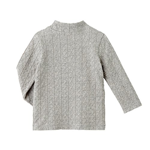 ケーブル模様が上品な、総柄ニットの長袖Tシャツです。 えりまわりがハイネックになったデザイン。 柔らかめのお生地で、程よくストレッチが効いています。 肌に触れる裏面はフラットなので、ソフトな着心地になっています。 ジャンパースカートのインナーにもピッタリ♪ 重ね着でも1枚でも着映えがするアイテムになっています。