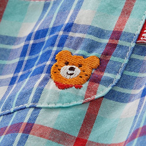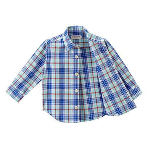 ビーンズくんのポイント刺しゅうが入ったチェックシャツです。 赤・白・青のチェックが爽やかですね デニム系、ベージュ系のボトムスとの相性もバッチリ さらっとした薄手素材なので 重ね着のインナーとしても着まわせますよ。 1枚でもモチロン可愛く着られて 季節の変わり目の羽織物としても重宝するアイテムです