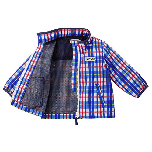 ちょっと肌寒い時に手軽に羽織れるウインドブレーカーです☆ 男の子用はチェックと迷彩、女の子用は小花とドットの総柄でとってもキュート♪ 裏地はメッシュになっていて、通気性のことも考えられています☆ 背中側のマジックテープで留められた切り替え部分からも、ムレを逃してくれますよ◎ しかもフードがえり元の下に収納されているので えり元のマジックテープを外すと簡単に広げることが出来ますよ! ファスナー裏にはえり元まであて布がしてあるので ファスナーにあたる部分の生地がこすれたり、 首にあたる不快感がないようなデザインになっています。 手触りもやわらかく薄手で軽いので、携帯してもかさばりませんよ◎ ご用意があると便利で、いろいろなシーンで重宝しますよ♪ 紫外線遮蔽率(UVカット)80%以上で、紫外線対策もこれで万全◎ 春からの通園・通学にもお勧めです☆ ●フードは取り外しできません ●紫外線遮蔽率(UVカット)80%以上