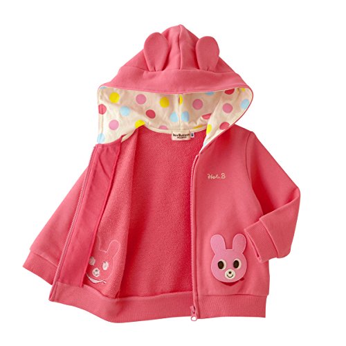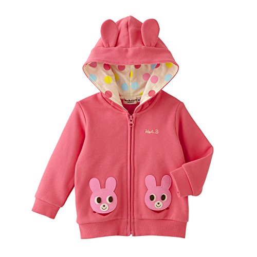 ビーンズくんとキャビットちゃんのお顔ワッペンが付いたキュートなパーカーです☆スタンダードな裏毛パイル素材は、着心地も抜群です!!季節の変わり目の羽織りものとしても、とっても重宝します☆フードにはお耳が付いていて、かぶるとピョコンと可愛い♪フード裏はカラフルな水玉がチラリ♪後ろ姿までバッチリ!!大きなお顔のワッペンはベビーちゃんならでは!!手軽に羽織れるパーカーは、体温調節にもかかせない便利アイテムです◎ ●素材:裏毛パイル(フード裏)44/2天竺プリント●品質:綿100%(リブ部分)綿95%、ポリウレタン5%●生産国:中国