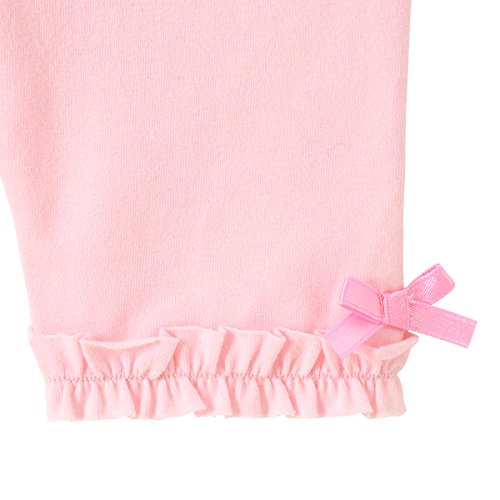 裾のダブルフリルがキュートなレギンス風6分丈パンツ! サイドのリボンも可愛いアクセントになっています。 ウエストは総ゴムで、ゴム替えホール付き。 べア天竺は伸縮性に富んだフィットしやすい薄手のカットソー素材。 無地なのでボトムスとの組合わせも自在! これならレギンスデビューもすんなり出来そうですね! いつものコーディネートにプラスすれば ワンランクアップしたガーリースタイルの完成! コーディネートの幅が広がるレギンス風6分丈パンツ。 このリーズナブルさもどうぞお見逃しなく!! ●6分丈