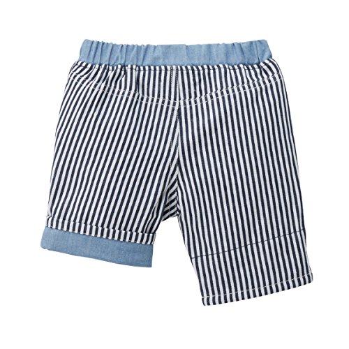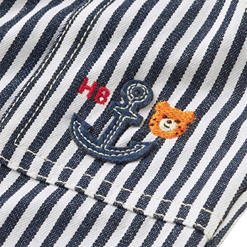 ビーンズくんがポイントになった6分丈パンツです。 無地はダンガリー、ストライプはヒッコリーの上品な素材を使用。 裾を折り返しても裏地が付いているので お子様のご成長やコーディネートに合わせて、手軽にイメチェンすることも出来ますよ。 ウエストはやや幅広の総ゴムで、ゴム替えホール付き。 ディリーにもタウンにも幅広く活躍してくれますよ。 ●6分丈 ●ポケット:あり(前両サイド)