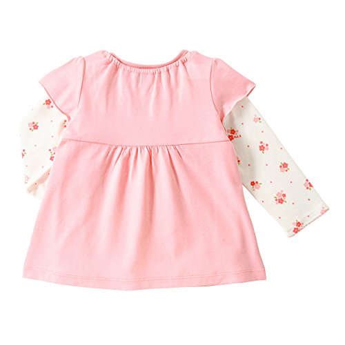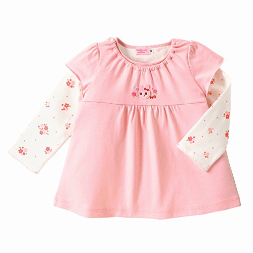 キャビットちゃんがポイントの、長袖Tシャツとチュニックのセットです。 Tシャツは薄手の素材で、小花とドット柄の可愛らしい総柄プリント! 単品でも合わせやすいように、白地メインのシンプルなデザインになっています。 チュニックの胸元には、キャビットちゃんのワッペンとお花刺しゅう入り。 胸元の切り替えからギャザーを寄せてふんわりさせた、女の子らしいシルエット。 えりまわりにはが入って、すぽんと手軽に着用できます。 可愛らしい2枚セットでお買い得感も満点! 他のインナーと組み合わせたりして、コーディネートも幅広く楽しんでくださいね!