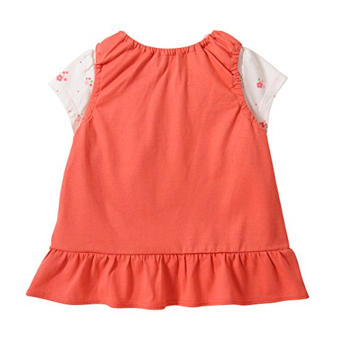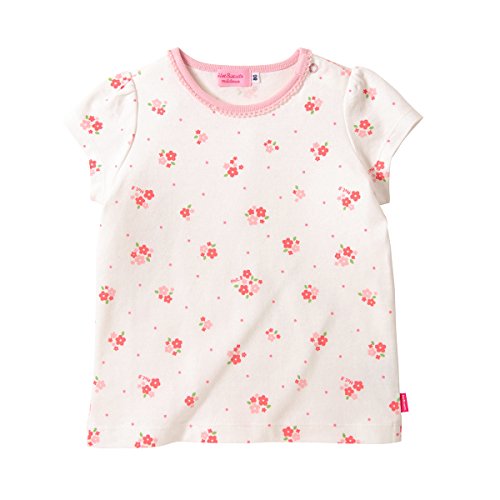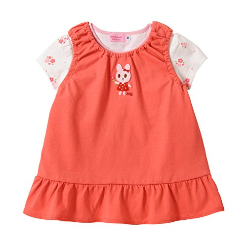 キャビットちゃんがポイントの、半袖Tシャツとチュニックのセットです。 Tシャツは薄手の素材で、小花とドット柄の可愛らしい総柄プリント! 単品でも合わせやすいように、白地メインのシンプルなデザインになっています。 チュニックの胸元には、お花を持ったキャビットちゃんのポイント。 えりまわりと袖口にはゴムが入って、すぽんと手軽に着用できます。 裾にフリルをあしらって、ふんわりした女の子らしいシルエットになっています。 可愛らしい2枚セットでお買い得感も満点! 他のインナーと組み合わせたりして、コーディネートも幅広く楽しんでくださいね!