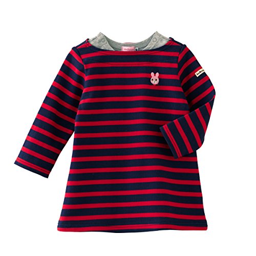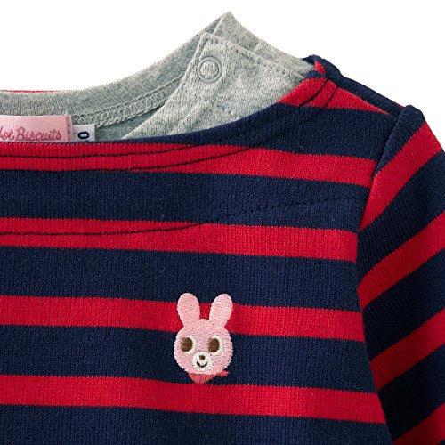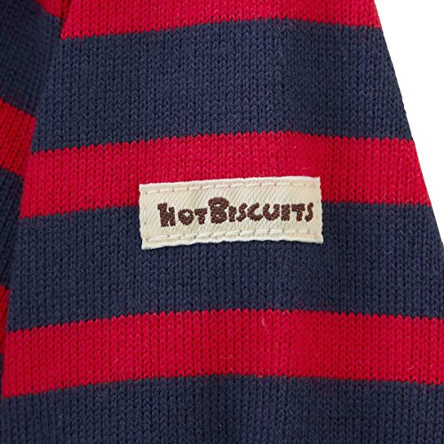 シンプルなボーダーワンピースです☆ ややしっかりめのTシャツ素材で1枚でも着やすいですよ♪ 胸元にはキャビットちゃんのポイント刺しゅう入り。 左腕の「HOT BISCUTS」のブランドタグもアクセントになっています。 パンツやレギンスなどのボトムスを合わせたり ベストなどの軽めのアウターを羽織っても可愛いですよ♪ ボートネックで重ね着風なのもオシャレですね☆ ちょっと小技の効いたアイテムでまわりと差をつけちゃいましょう♪ ●全サイズ両肩あき