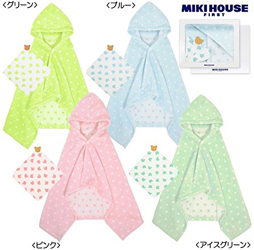 ミキハウス ドットバスポンチョ ガーゼハンカチセット (グリーン(07)) 名入れ 刺繍 MIKIHOUSE 40-3808-674 ミキハウスファースト 日本製