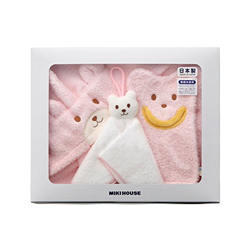 くまさんフェイスの、バスポンチョ、バスミトン、ハンドタオルの3点がセットになった便利なお祝いセット。