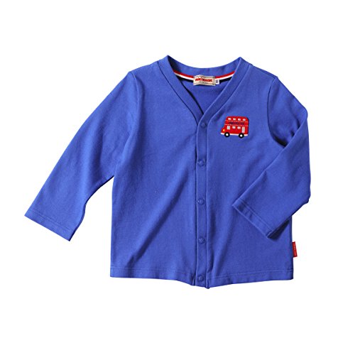 胸元にロンドンバスのワッペンが付いたカーディガンに