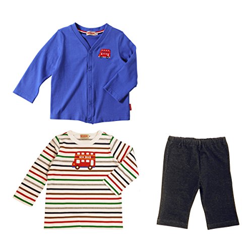 [ミキハウス] MIKIHOUSE MHバスボーダー長袖Tシャツ付きカーディガン3点ギフトセット (70cm-80cm) 14-1116-783 青