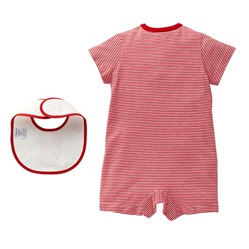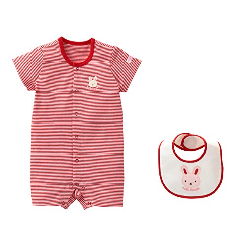 [ミキハウス] MIKIHOUSE 【ミキハウス(ベビー)】 ボーダーショートオール&スタイセット (70cm・80cm) 44-1302-567 赤 80cm