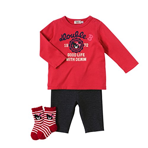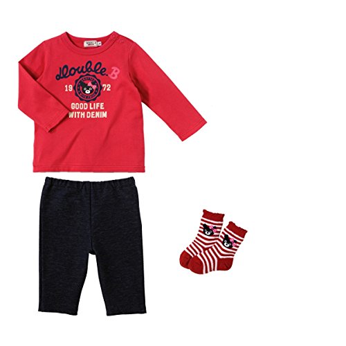 [ミキハウス] MIKIHOUSE 【ダブルB】 カレッジロゴ風長袖Tシャツ+8分丈パンツ+ソックス 3点ギフトセット (70cm-80cm) 64-1105-788 赤