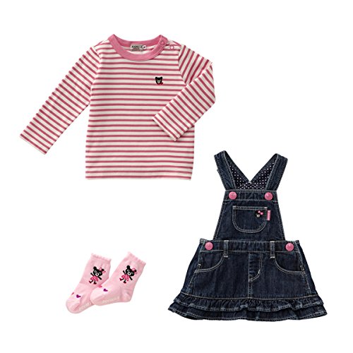 デニムジャンパースカート&ボーダー長袖Tシャツ&ソックスの3点セットです。