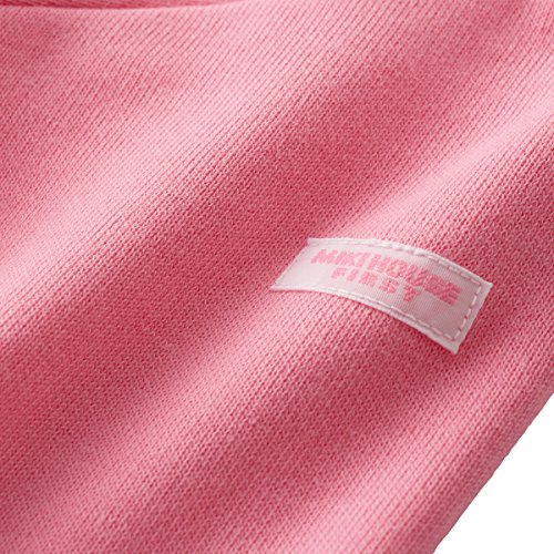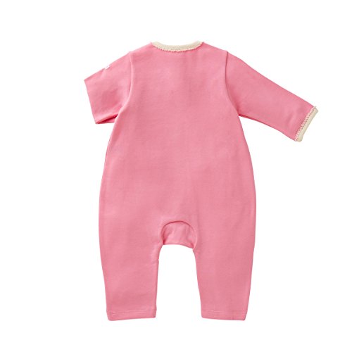 ピンク色がキュートなカバーオールは、薄手のトレーナ地素材なので、長~く着られて重宝します。
