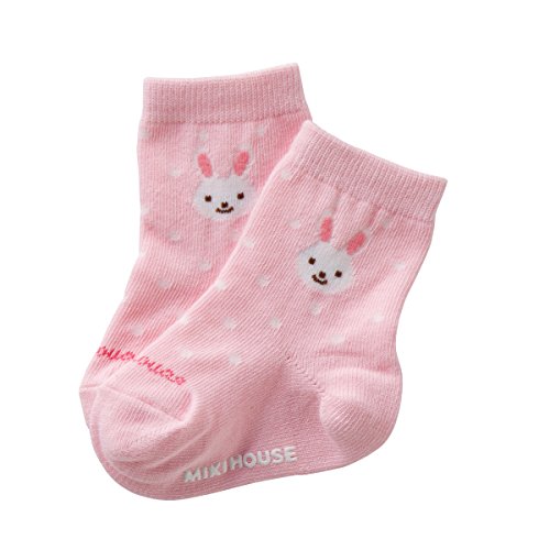 パステルカラーピンクのソックスは、うさちゃんのワンポイントにドット柄がキュート♪