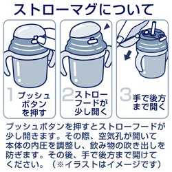 ワンポイントの赤い取っ手が可愛いダブルBのストローマグ♪ やわらか素材でお口にやさしい、飲みやすいななめストロー。 マグを傾けても最後まで飲みやすい『くの字型』チューブ。 各パーツは、すべて外せて洗いやすく、食洗機も使えて便利です。 お手入れしやすい簡単構造で、本体部分のみ電子レンジも使えますよ。 飲みやすい持ち手つきです。 ストローマグは、毎日のお出かけにも大活躍! いくつか持っていると助かるものなのでちょっとしたご出産祝いにもおすすめです。 《ストローマグについて》 プッシュボタンを押すとストローフードが少し開きます。 その際、空気孔が開いて本体の内圧を調整し、飲み物の吹き出しを防ぎます。その後、手で後方まで開けてください。 (※この製品はもれにくくなっていますが、完全密封ではありません。中身を入れ、斜め・横・逆さの状態で持ち運ぶとさまざまな条件により漏れることがあります。) ※ハンドル部分には少し遊び(カタカタ動く余裕)があります。 これは、落下などでパーツが破損するのを防ぐためのものですので、不具合ではありません。
