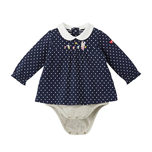 [ミキハウス] MIKIHOUSE 接結天竺 白襟付きうさこ長袖ボディシャツ (70cm・80cm) 13-1504-611 紺 70cm