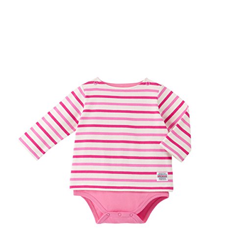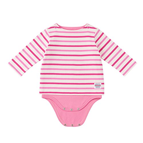 [ミキハウス] MIKIHOUSE 天竺素材 ボーダー長袖ボディシャツ (70cm・80cm) 13-1501-612 白×ピンク 70cm