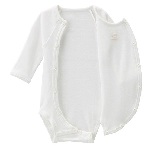 赤ちゃんのお顔色がわかりやすい白色長袖ロンパース肌着です