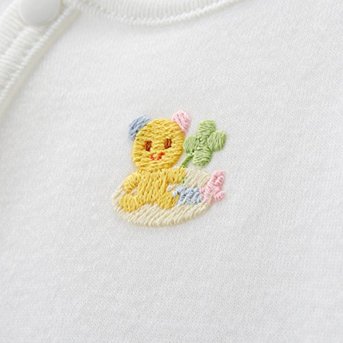 胸元のくまちゃん刺繍は転写刺繍で、肌にチクチクあたらず、赤ちゃんの敏感なお肌にも安心です。