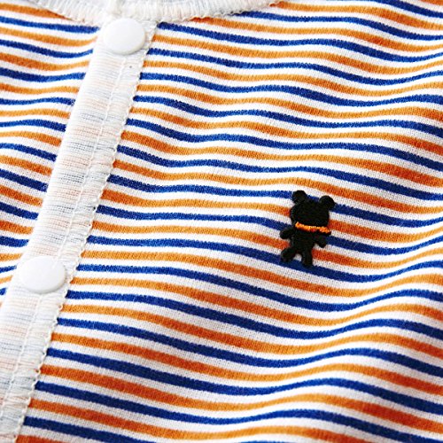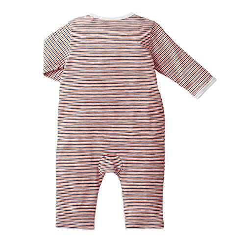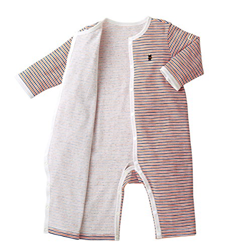 細ピッチボーダー柄が可愛いカバーオール型の肌着です