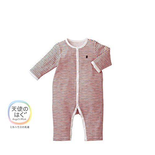 [ミキハウス] MIKIHOUSE 【ミキハウス(ベビー)】 ピュアベール天使のはぐ ボーダー長袖フライスカバーオール肌着 (60cm・70cm・80cm) 40-2425-977 紺 80cm
