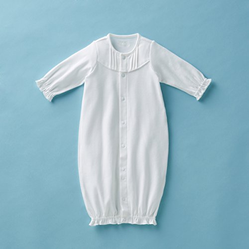 ツーウェイオールは、股のホックの付け替えで、新生児期はおむつ替えに便利なドレスタイプで、足の動きが活発になってきたらカバーオールタイプとして、2通りに長く使えて重宝するご出産準備の基本アイテムです。