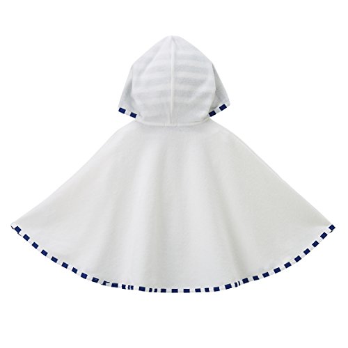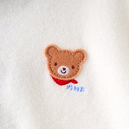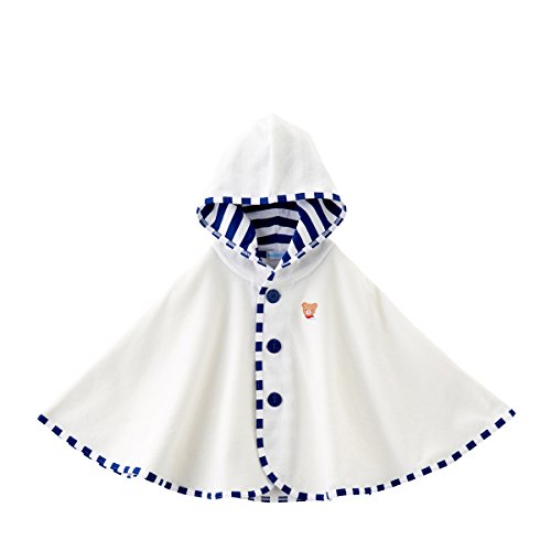 くまちゃんとうさちゃんのアップリケ刺繍がついた薄手のポンチョです☆細やかな目のパイル素材のポンチョです。春先からの肌寒い時期や秋口くらいまで活用できる便利な羽織物ポンチョ!UVカット機能付きで、春先からの紫外線や日差しからも赤ちゃんを守ります。また、室内での冷房対策など、体温調節にも重宝します!フードが付いているので、頭までしっかり守ってくれますよ◎やわらかで細やかな薄手のパイル素材で、肌触りも抜群!!優しい感触で赤ちゃんのお肌にも安心◎◎前ボタンで着脱できます。くまちゃんにはイカリマークのボタン、うさちゃんにはラメ仕立てのお花型のボタンをつけました。裾のホックを留めると袖を通すことができて便利です。新生児から、2、3歳くらいまでオールマイティーに使えるオススメのアイテムです♪