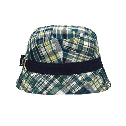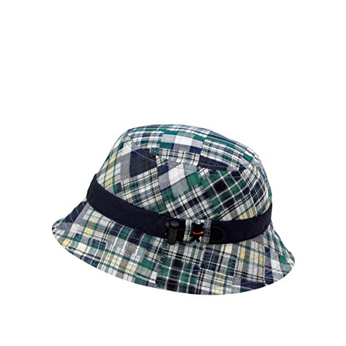 爽やかなパッチワーク柄のリバーシブル帽子です☆片面は、生成りのダンガリー素材で、シンプルな無地に仕上げています。2パターンで着用できてとっても重宝しますね。UVカット対応しているので、お子様の頭を紫外線からしっかりとガードしてくれます。頭囲はゴムのドローコード(ひも通しがついた調節機能)がついて、調節できて便利です。どちらの面もドローコードが表側に出せる仕様になっているので、両面ともに調節可能です。頭の大きさに合わせて被れるので、便利で安心ですね◎