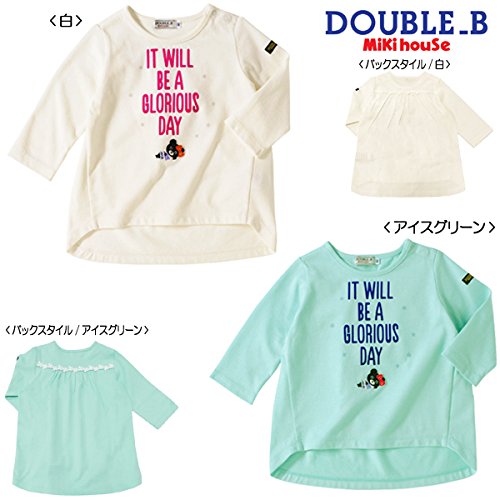 (ミキハウス)MIKIHOUSE ダブルB【DOUBLE B】後身頃長めのリボンレースつき長袖Tシャツ (アイスグリーン, 100cm)