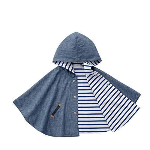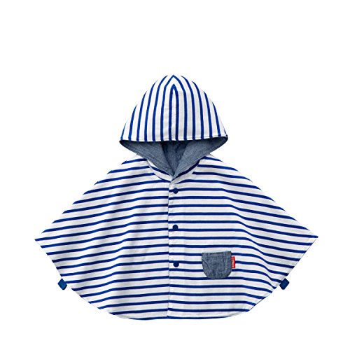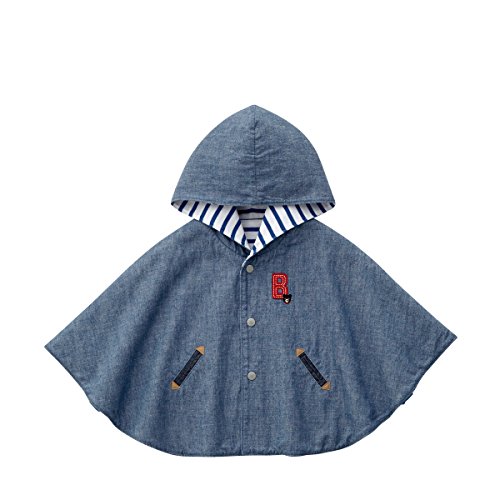 [ミキハウス] MIKIHOUSE 【ダブルB】 無地×ボーダー柄☆リバーシブルポンチョ (70-90cm) 61-3801-975 ブルー