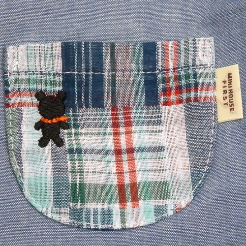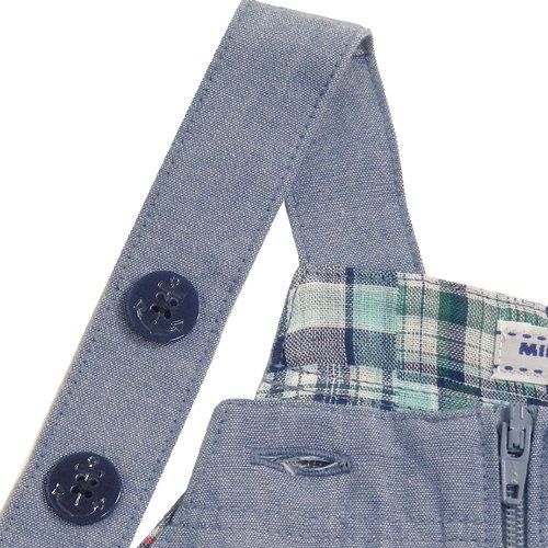[ミキハウス] MIKIHOUSE 【ミキハウス(ベビー)】 チェックポケット付き5分丈オーバーオール (70cm・80cm・90cm) 42-3301-788 ブルー 80cm