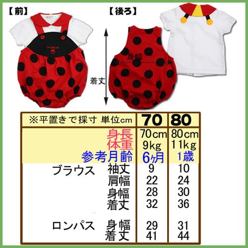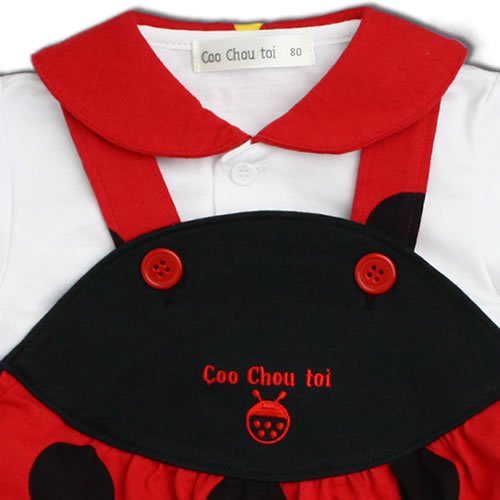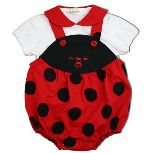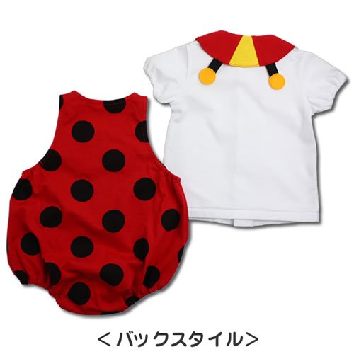 【着ぐるみシリーズ】てんとう虫のブラウスとロンパースのスーツです。赤ちゃんのときだから着てほしい、かわいいお洋服です。赤ちゃんのかわいいスナップ写真をパチリ!とっても記念になります。お出かけ用、記念撮影用としてとっても人気がある商品です。