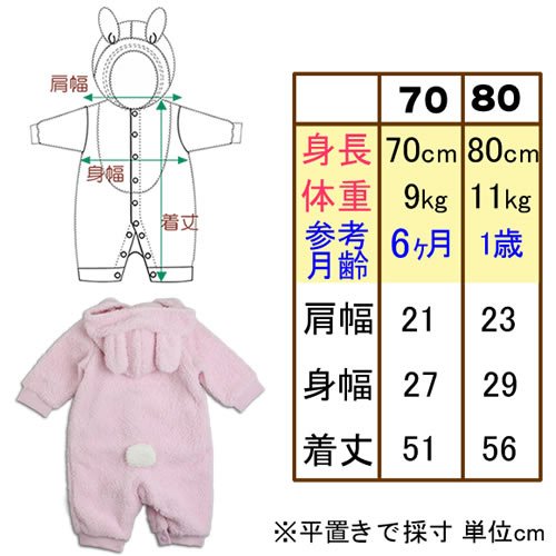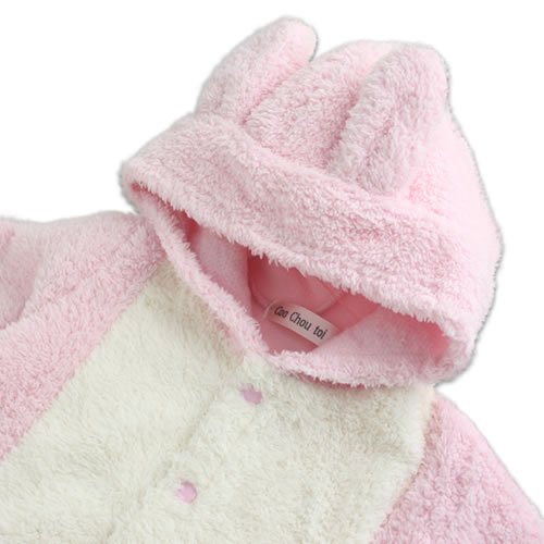 【ウサギ】フリース フード付 カバーオール 【うさぎ】 70cm ピンク