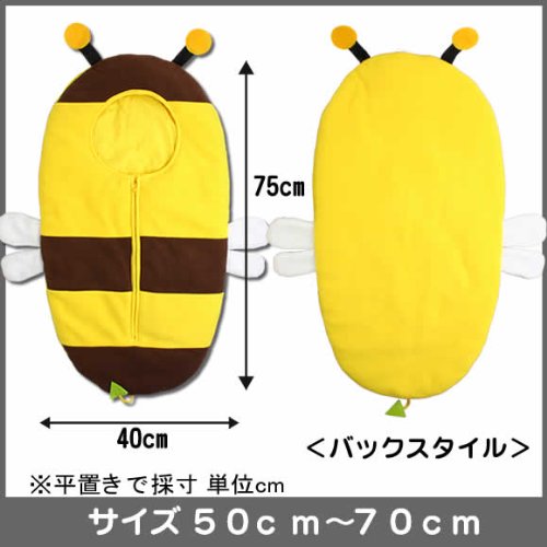 お顔だけ出してハチさんに変身~~♪ フリース生地のスリーパーは、足先まで袋の様にくるみます。 なりきり記念撮影にバッチリですハロウィン、クリスマス、パーティー、年賀状用、記念撮影用として【寝袋】の着ぐるみは当店の人気商品です。フリース素材は軽くあったかです。