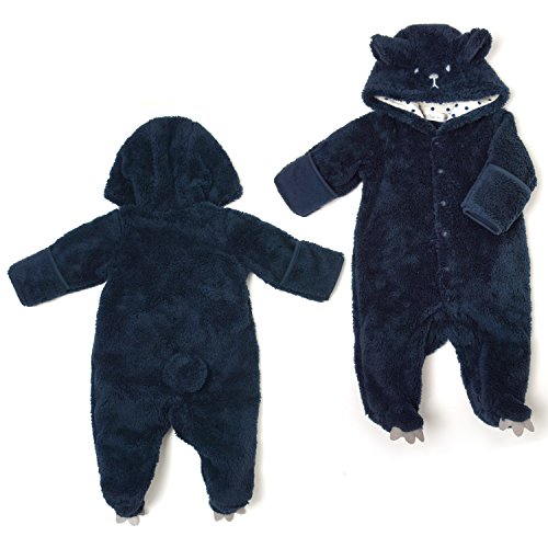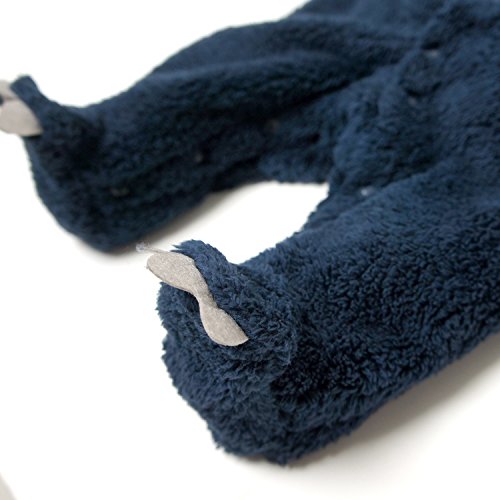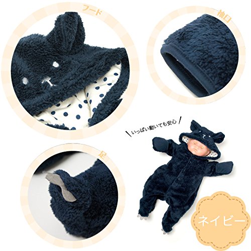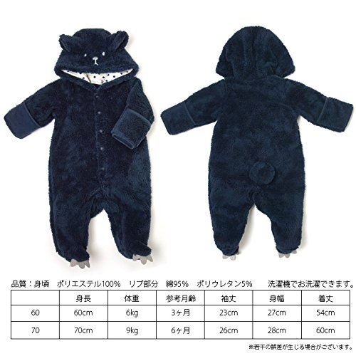 【クマ白&紺】足袋付シャギーフリースカバーオール (60cm, NB-紺)