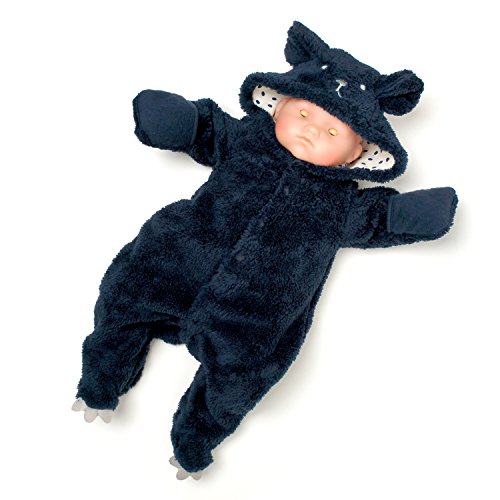 お出かけ用、ハロウィン用、年賀状用、記念撮影用の着ぐるみです。 軽くて、暖かいシャギーフリースの クマさんの耳と 顔刺繍がついたフードです。 おしりのシッポがカワイく 目立ちます。 また、足の先には フェルトのつめがついていてかわいい♪